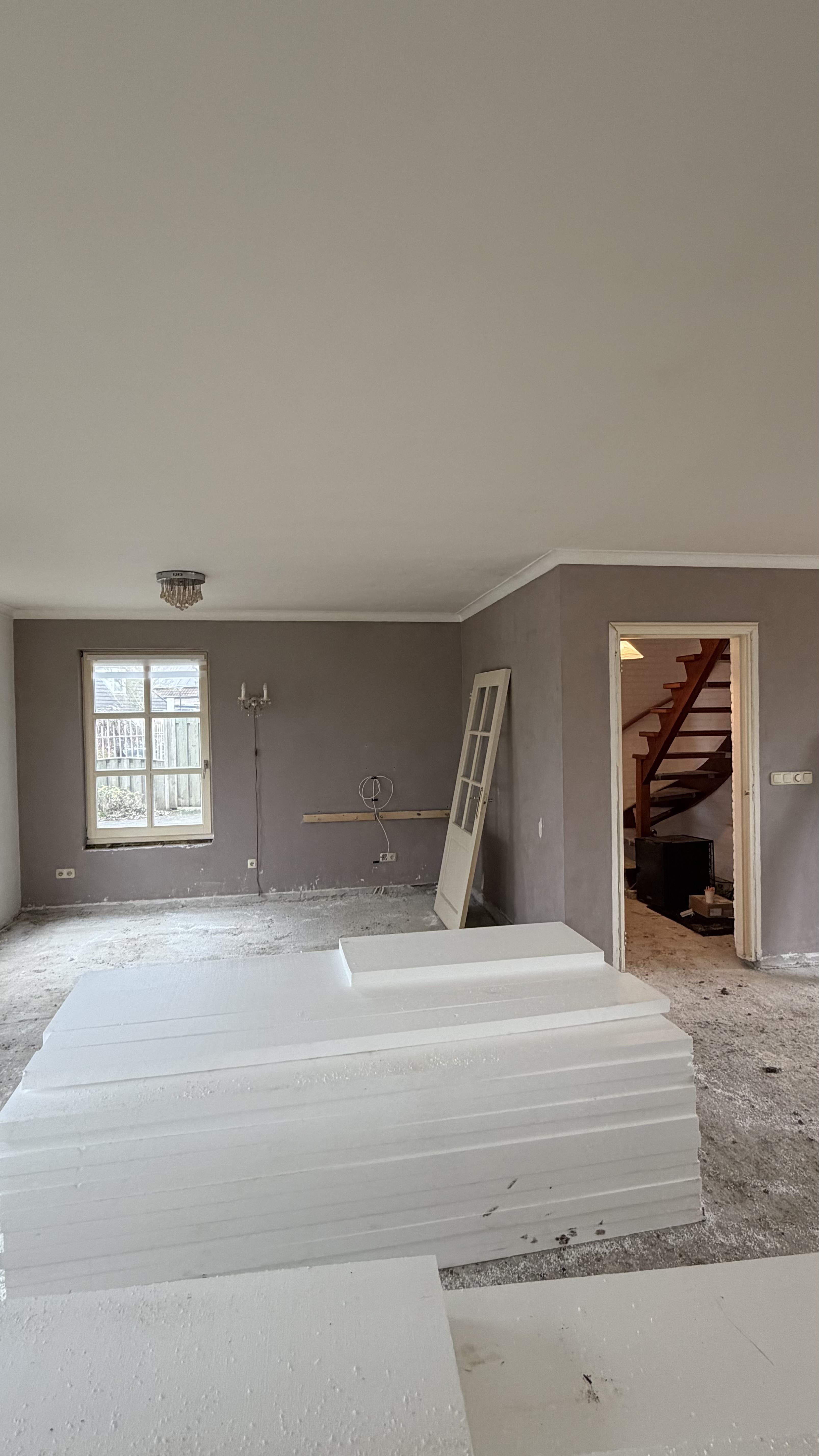De verbouwing van een woning is onlangs van start gegaan. In dit project wordt de woning ingrijpend aangepakt en volledig gemoderniseerd, met aandacht voor comfort, duurzaamheid en een betere indeling van de leefruimtes.