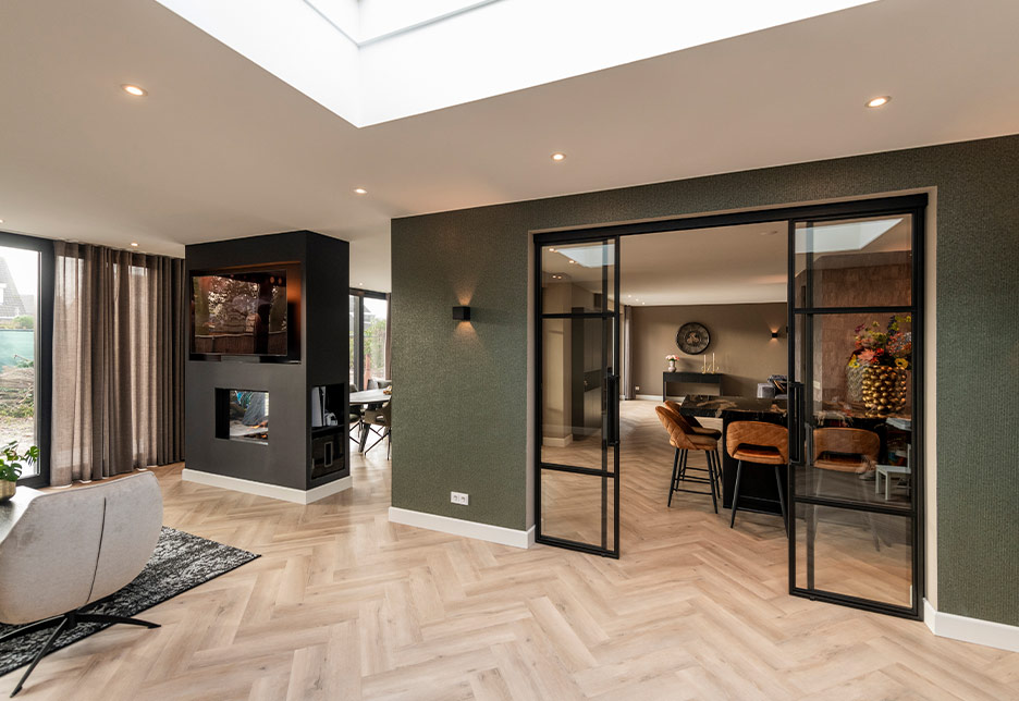 Naast de aanbouw hebben we de bestaande woning verder gemoderniseerd door alle oude kozijnen te vervangen door nieuwe aluminium exemplaren. Zo vormt het geheel een harmonieus en toekomstbestendig woonhuis.