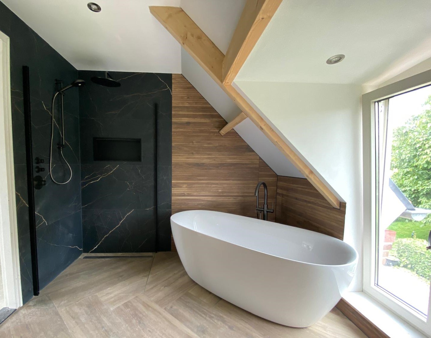 - Volledig vernieuwde badkamer: De badkamer is vernieuwd, met tegels op zowel de muren als de vloer voor een frisse, eigentijdse look.