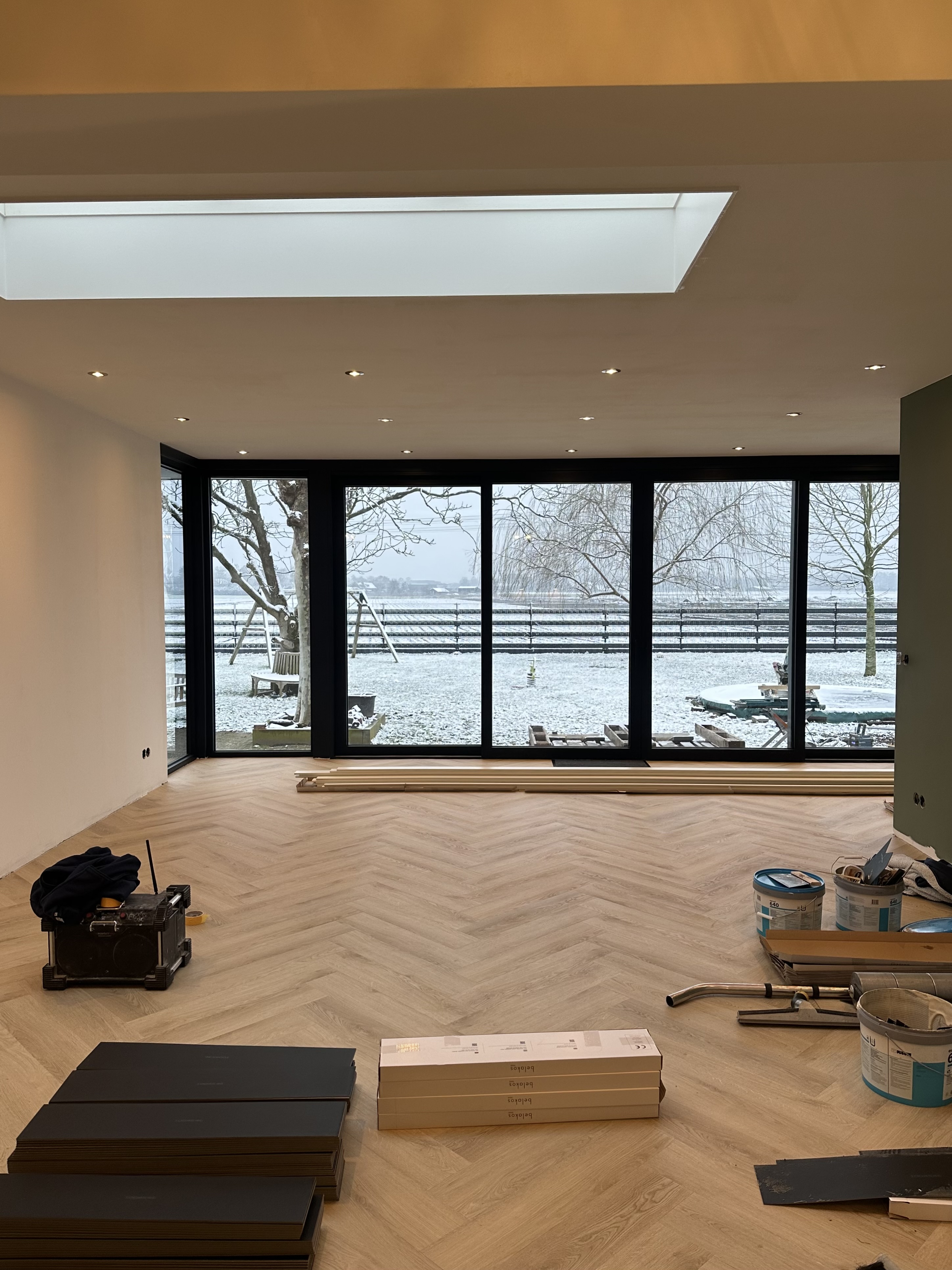 De werkzaamheden bestaan onder andere uit het realiseren van een grote aanbouw met lichtstraat, waarmee extra leefruimte en veel natuurlijk daglicht wordt toegevoegd. Daarnaast worden hoogwaardige aluminium Reynaers kozijnen geplaatst voor een strakke uitstraling en goede isolatie.